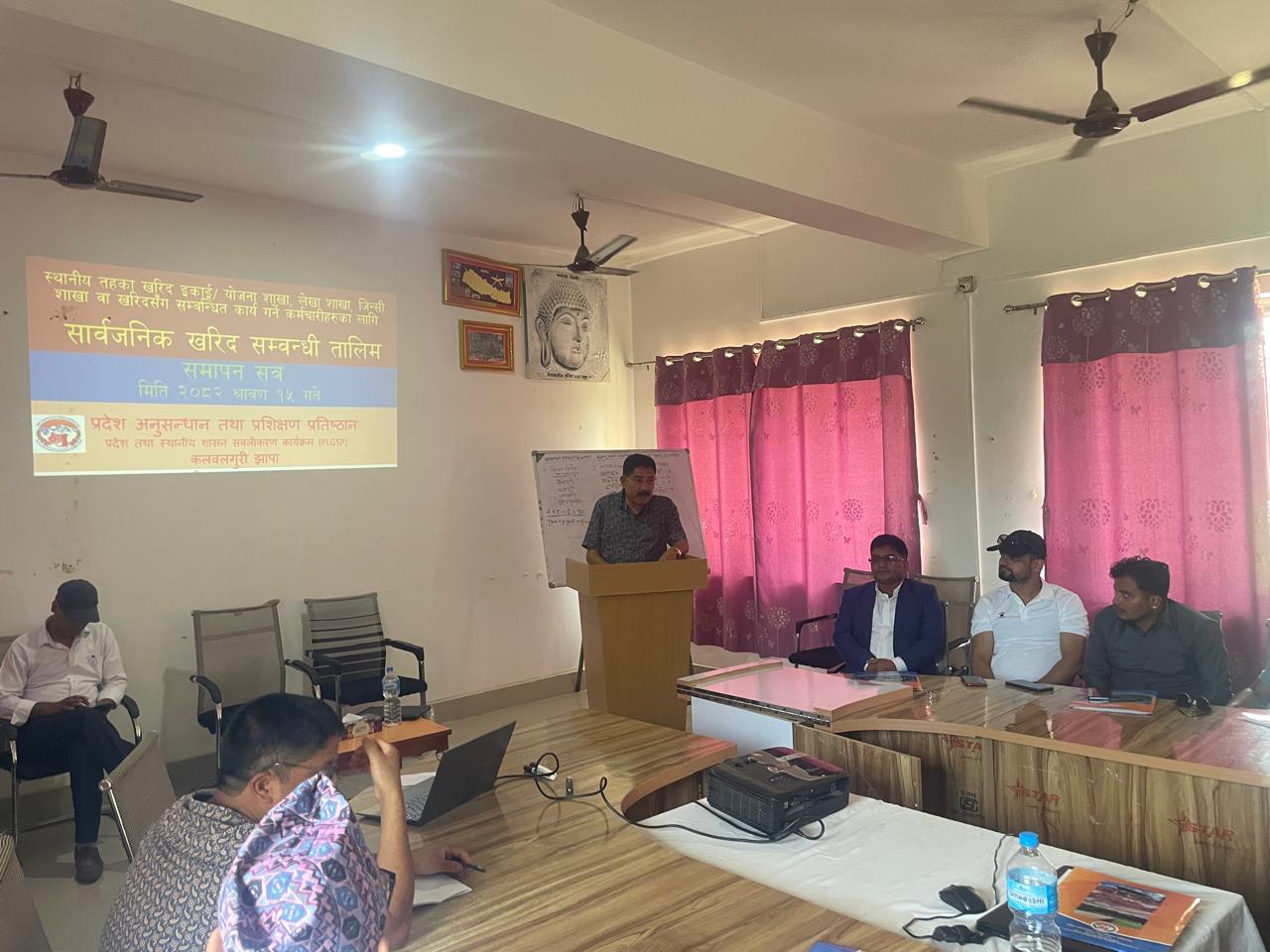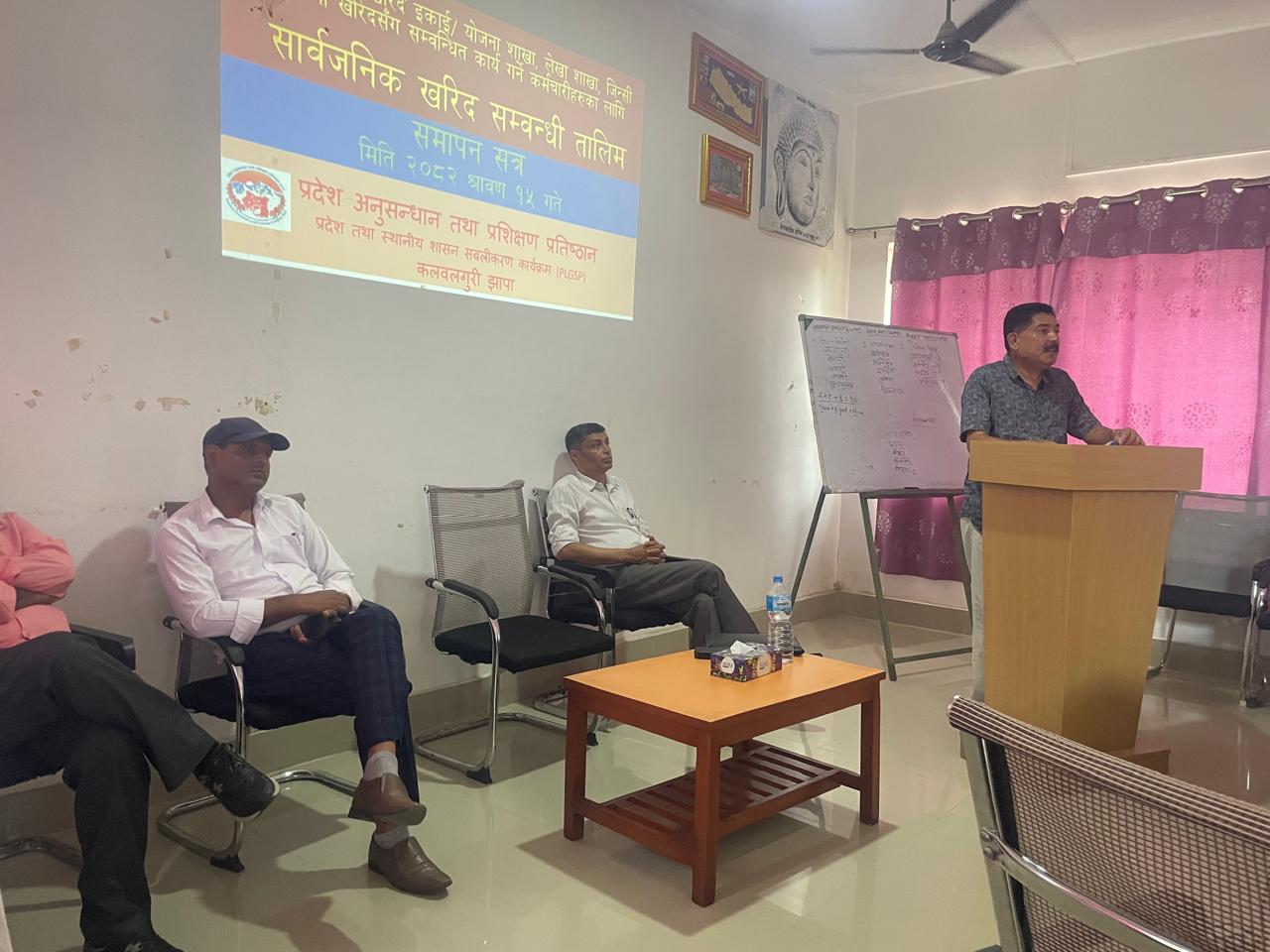 सार्वजनिक खरिद सम्वन्धि तालिमको समापन सत्रका तस्विरहरु २०८२-०४-१५ गते